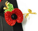 Poppy Crystal Brooch Large Gold Tone with Leaf