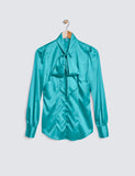 Aqua Fitted Luxury Satin Shirt - Single Cuff