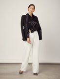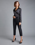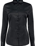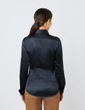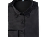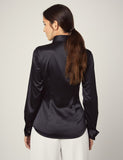 PLAIN BLACK FITTED SATIN SHIRT - DOUBLE CUFF