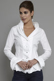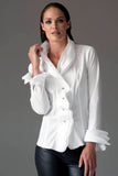 Tiered ruffles at the neckline and cuffs make the Isabella an undeniably feminine shirt. French seams and silver and diamante buttons add the finishing touches to this lovely blouse. Offset the volume of the ruffles by pairing this shirt with a tailored pencil skirt.
