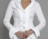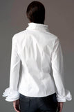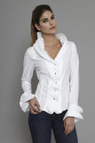 Tiered ruffles at the neckline and cuffs make the Isabella an undeniably feminine shirt. French seams and silver and diamante buttons add the finishing touches to this lovely blouse. Offset the volume of the ruffles by pairing this shirt with a tailored pencil skirt.