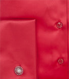 This red satin shirt is designed with an elegant two button pointed collar and double cuffs. The shirt is fitted, offering a contemporary look. It is made from 97% quality polyester, which feels extremely comfortable and soft, while the 3% elastane allows a slight stretch which stops the shirt from feeling restricting.