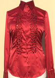EMBROIDERED RED SATIN SHIRT - DOUBLE CUFF