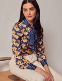 Navy & Orange Geometric Satin Shirt - Single Cuff - Pussy Bow