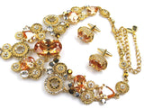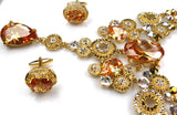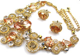 Nour Gold necklace. This pretty Y-shaped necklace is made up of faceted crystals in various shapes and sizes, with a series of gold-tone circles adorned with smaller crystals. Feel like royalty in this beautiful and eye-catching necklace.