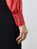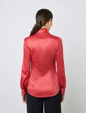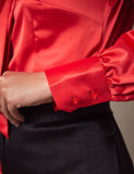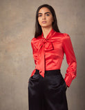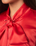 This elegant red blouse is a fashionable and indulgent addition to any women's attire. The bow adds a distinctive feature, offering a unique and eye catching aspect to your outfit. The bow is also self tied which allows you to personalise your look.