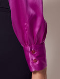 Purple Satin Shirt - Single Cuff - Pussy Bow