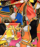 This women's elegant red and blue satin blouse features a print design and a stylish pussy bow. The bow adds a distinctive feature, offering a unique and eye catching aspect to your outfit for both, smart and casual occasions.