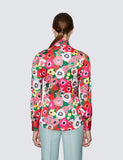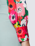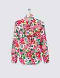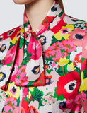 Red & Green Large Poppy Print Satin Blouse - Single Cuff - Pussy Bow