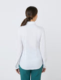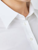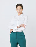 This women's white fitted shirt is designed with an elegant one button pointed collar and double cuffs. It is made from 97% quality cotton, which feels extremely comfortable and soft, while the 3% elastane allows a slight stretch which stops the shirt from feeling restricting. This style is ideal for the office and smart/ casual events.