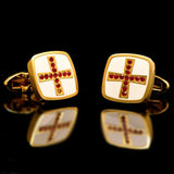 Gold Cufflinks with red crystal cross