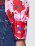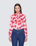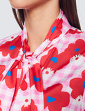 Pink & Red Floral Fitted Satin Blouse - Single Cuff - Pussy Bow