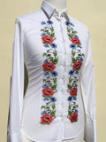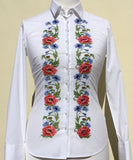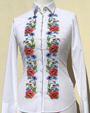 HAND EMBROIDERED WHITE SHIRT - DOUBLE CUFF