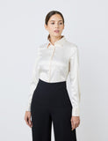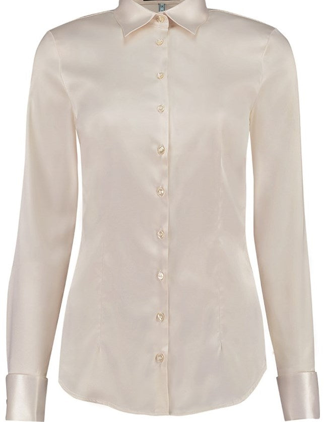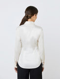 NAVY FITTED SATIN SHIRT - SINGLE CUFF
