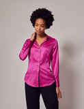 Fuschia Fitted Satin Shirt - Single Cuff