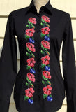 HAND EMBROIDERED BLACK SHIRT WITH BEADS - DOUBLE CUFF