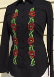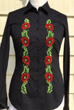 HAND EMBROIDERED BLACK SHIRT WITH BEADS - DOUBLE CUFF