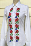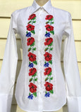 HAND EMBROIDERED WHITE SHIRT WITH BEADS - DOUBLE CUFF