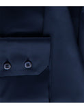 NAVY FITTED SATIN SHIRT - SINGLE CUFF