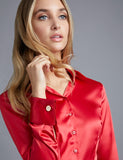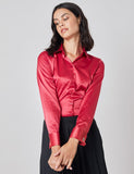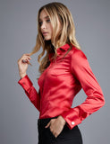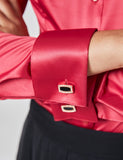 NAVY FITTED SATIN SHIRT - SINGLE CUFF
