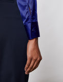 NAVY FITTED SATIN SHIRT - SINGLE CUFF