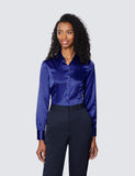 This stylish royal blue blouse is crafted from a luxurious satin fabric with a sumptuously soft silk touch feel. Thanks to the high filament yarn, the material has the characteristics of silk whilst also being machine washable. Featuring a distinctive vintage collar and a flattering fitted silhouette. This adaptable and opulent shirt will enhance every wardrobe.
