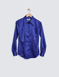 Royal Blue Vintage Collar Satin Shirt - Single Cuff