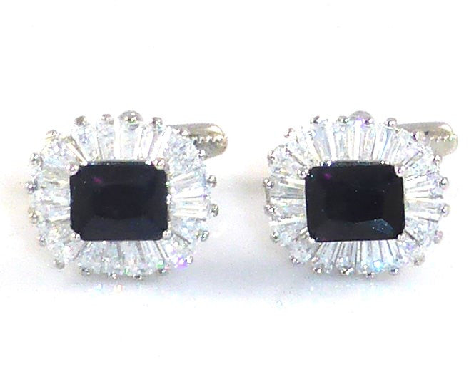 BLACK SILVER RHINESTONE CUFFLINKS