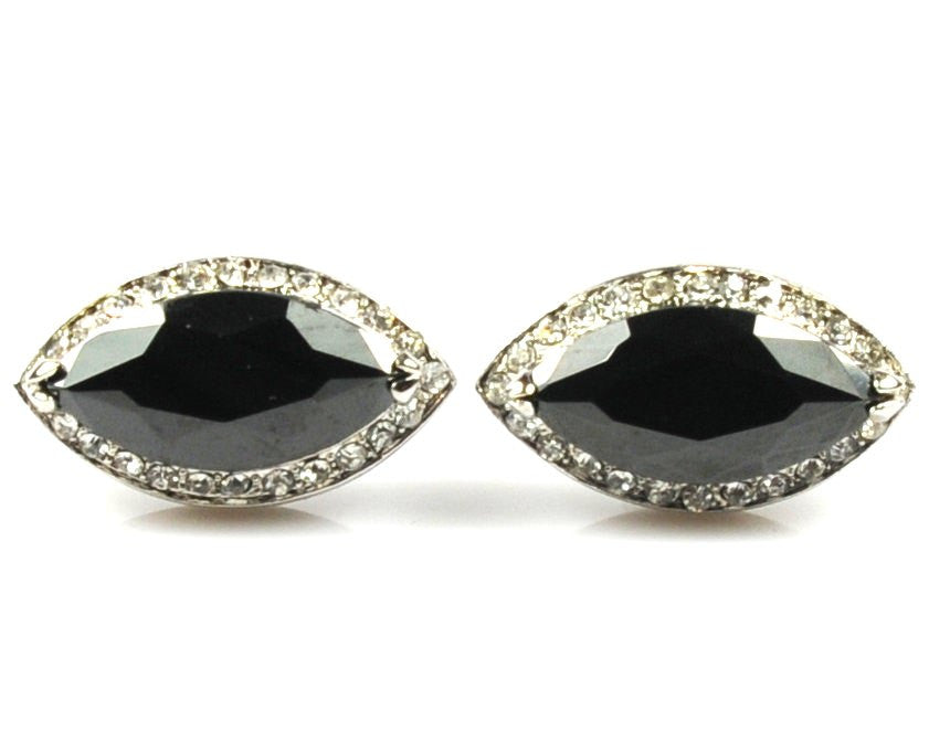 BLACK SILVER CUFFLINKS WITH CRYSTALS