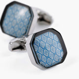 BLUE SILVER SQUARE CUFFLINKS