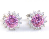 Pink Sapphire Fine Topaz Round Cut 18K White Gold Plated Cufflinks. 2x12mm Pink Color Sapphire, 24x3mm White Fine Topaz. Color - Pink. Style - Round Brilliant Cut. Size16mm x 16mm Each. Material - 18K Yellow Gold Plated. Net Weight - 14 grams. Cufflinks arrive in elegant and luxury gift box, packaged in organza bag and gorgeous carrier bag with ribbon.