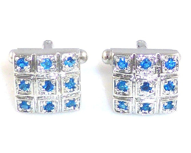 BLUE SILVER SQUARE CUFFLINKS