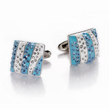 925 silver, Rhodium plated cufflinks Blue and clear cubic zirconia's cover this uniquely shaped cufflink. Nice and lightweight, these cufflinks are appropriate for both French cuff shirts and blouses. Cufflinks arrive in elegant and luxury gift box, packaged in organza bag and gorgeous carrier bag with ribbon.