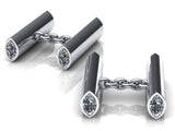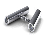 Scrolls Design - Cufflinks - Diamond Oval cut set in 18ct white gold with chains, diamonds weigh 0.10ct each, a total of 0.40ct G Si1 quality, 14 round brilliants total weight 0.20ct. Hallmarked gold weight 12gm. Links measure 19mm in length, 6.3mm height, 4.3mm width. Usual price £5.750. Cufflinks arrive in elegant and luxury gift box, packaged in organza bag and gorgeous carrier bag with ribbon.