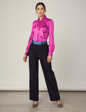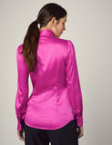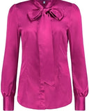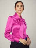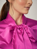 FUCHSIA FITTED SATIN BLOUSE - PUSSY BOW