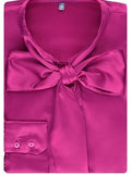 This women's elegant blouse features an fuchsia design and a stylish pussy bow. The bow adds a distinctive feature, offering a unique and eye catching aspect to your outfit for both, smart and casual occasions. The bow is also self tied which allows you to personalise your look.